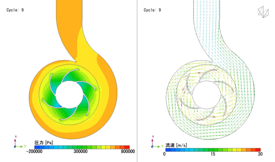 ▲ 遠心ポンプCFD可視化画像 - CFturbo連携