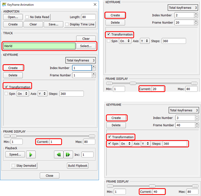 ・Spin にチェックを入れて On を選択、Steps: 360