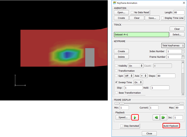 矩形ダクト内の非定常流れ解析データを使用してキーフレームアニメーションアニメーションを作成します。
