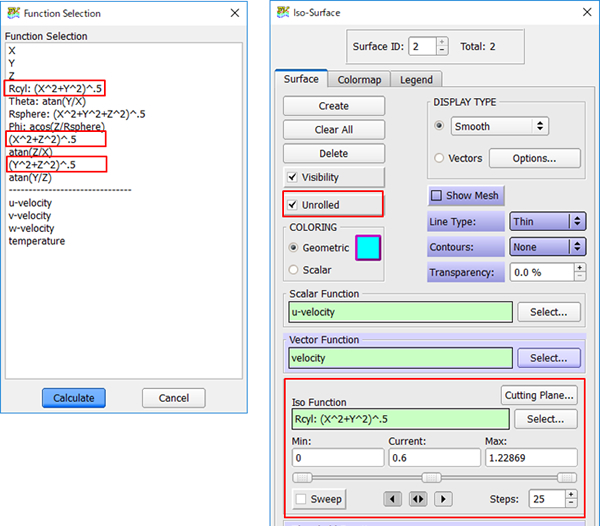 Iso-Surfaceにより作成した円筒面をUnrolled機能により平面展開して表示する方法について説明します。