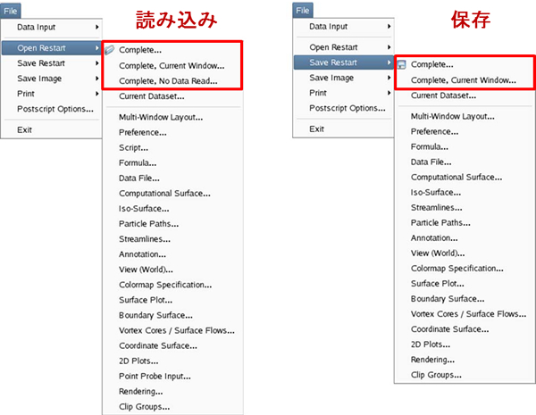 File → Save Restart → Current Window... より、マルチウィンドウレイアウト上でのカレントのウィンドウの設定内容が各リスタートファイルに保存されます。つまりシングルウィンドウのコンプリートリスタートファイルと言えます。