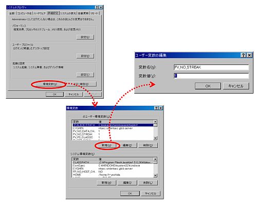 -> [プロパティ]-> [詳細設定] -> [環境変数] -> [新規]