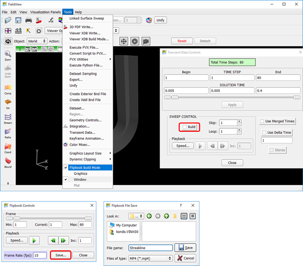 1. 環境変数 FV_SINGLE_FILE_STREAKLINES=1 の設定(流跡線の表示を行う場合) デフォルトでは流脈線データはPARTICLE SETフォーマットで保存されます。PARTICLE SETフォーマットでは、非定常Sweepを行った際に各タイムステップでの粒子軌跡データが個別のファイルに保存されます。これらのファイルには各放出粒子の軌跡の時刻歴の情報は含まれていないため、流跡線として表示を行うことはできません。流跡線として表示するためにはSTREAKLINEフォーマットで出力する必要があります。 STREAKLINEフォーマットでは非定常Sweepを行った際に各タイムステップでの粒子軌跡データは1つのファイルに連続して保存されます。 STREAKLINEフォーマットで出力したい場合は、環境変数 FV_SINGLE_FILE_STREAKLINES=1 を設定した後、FieldViewを起動して以下の作業を行ってください。