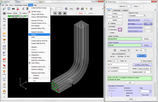 2. Streamlinesパネルを開いた状態で Tools→Export よりファイル名を指定して流線データを保存します。