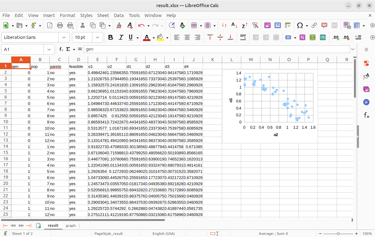 ワークブック内の Graph シートでは、目的関数の散布図が自動生成されます。