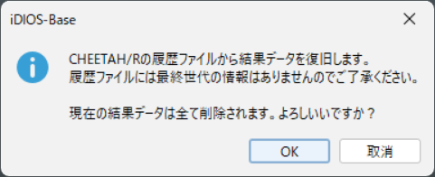 Windows Update などにより最適化実行中に予期しないアプリケーション終了が発生する場合があります。このような場合には、CHEETAH/R の History ファイルから結果データを復旧できます。