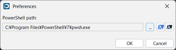 複数バージョンの PowerShell がインストールされている場合は、使用するプログラムを[Edit]>[Preferences]の[PowerShell path]に指定します。