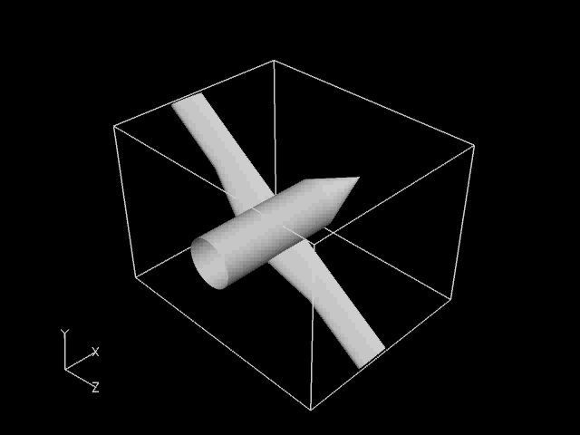 上記の手順1〜2の作業で、以下の図のようなモデルが時刻進行にともなって、 annotation 部分の "solution time=" の部分の数値が変化します。