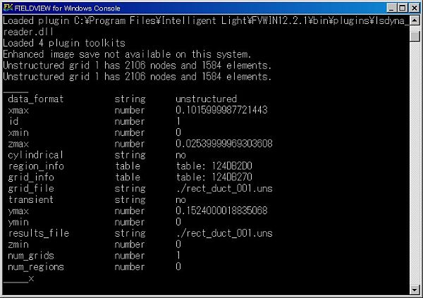 まず、サンプル FVX スクリプトとリスタートファイルをダウンロード(右クリック→ファイル保存)して、作業ディレクトリ(\uns ディレクトリの上の階層)に配置してください。あとは、”GetDatasetInfo.fvx”を実行するだけです。