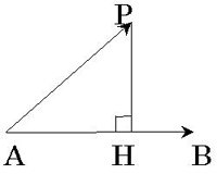 参考:ベクトルの内積、正投射、ベクトルの減法の法則 VecABの上へのVecAPの正投射 (図1) VecPH = ( VecAB ・ VecAP ) / ( VecAB )^2 * VecAB ベクトルの内積 VecAB ・ VecAP = "VecAB" dot "VecAP"