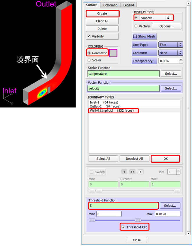 5. Threshold Function: Z に変更し、Max: 0.0128 を指定、Threshold Clip にチェック