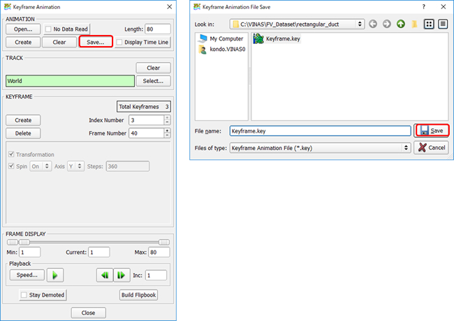 ・ANIMATION 内 Save をクリック