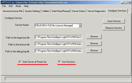 2.下図の、"Use Services"と、"Start Server at Power