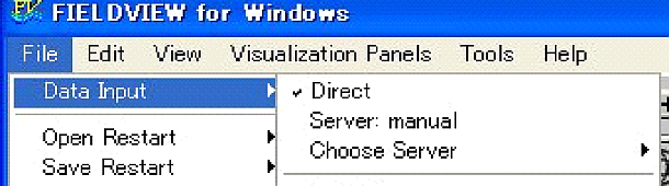 《手順4》 サーバーモードへ切り替えたら、File->Data Inputメニューで読み込みたいファイルフォーマットを選択。
