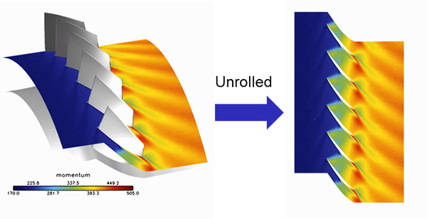 Iso-Surfaceにより作成した円筒面をUnrolled機能により平面展開して表示する方法について説明します。