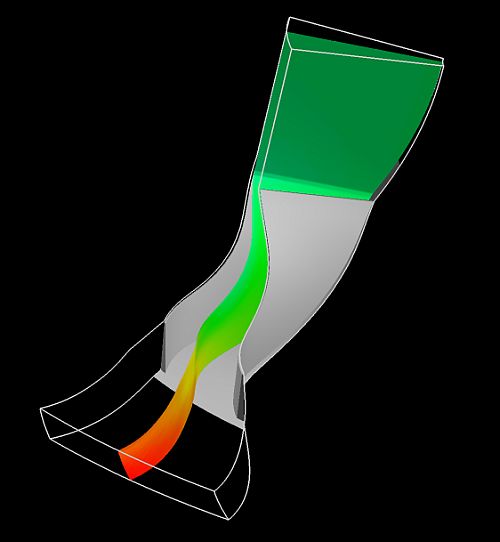 解凍した \data ディレクトリの中に 構造格子をもちいた 円筒座標モデルが配置されています。ディレクトリ内の sample.dat という Restart ファイルを読み込むことによって、以下のような図が表示されます。